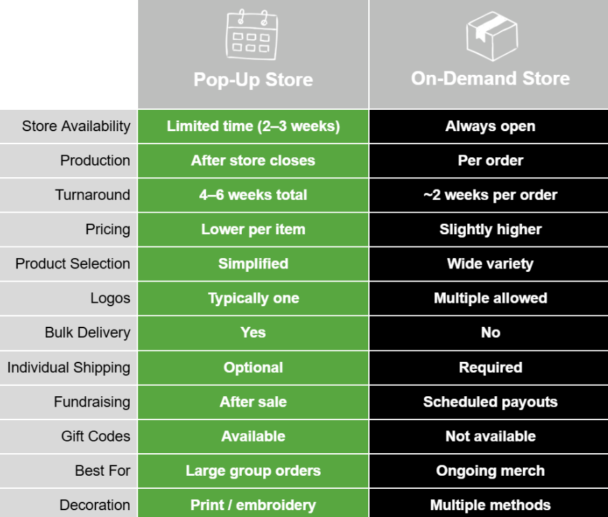 Teams, schools, company uniforms, spirit wear, booster clubs, and large group orders with a shared logo.